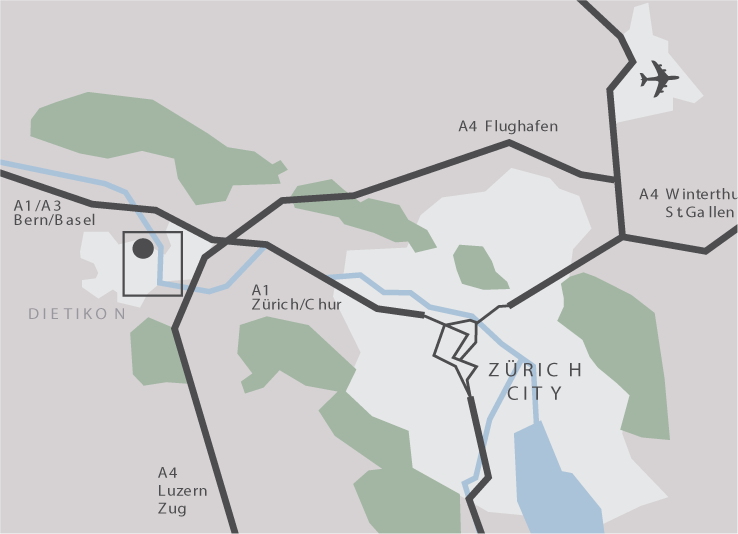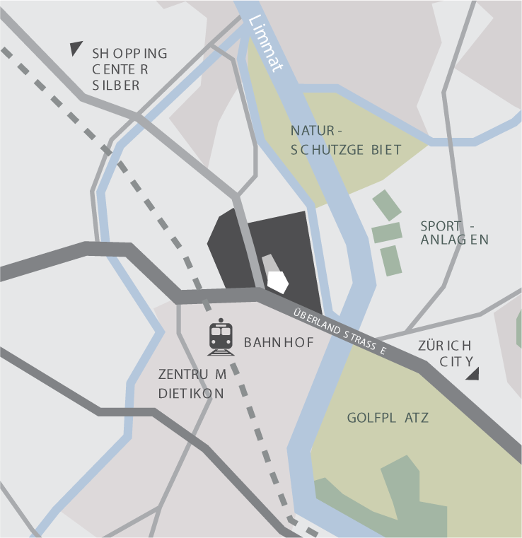Wenn Sie via Privatverkehr von der Autobahn A1 (Zürich-Bern) her kommen, nehmen Sie die Ausfahrt Dietikon und biegen beim ersten Lichtsignal in Richtung Silbern links ab. Fahren Sie dann geradeaus bis auf die Heimstrasse, wo Sie auf der linken Seite den Limmat Tower antreffen. Aus der Region herkommend gelangen Sie am Besten via Überlandstrasse direkt zum Limmat Tower, hier finden sich genügend gebührenpflichtige Aussenparkplätze.